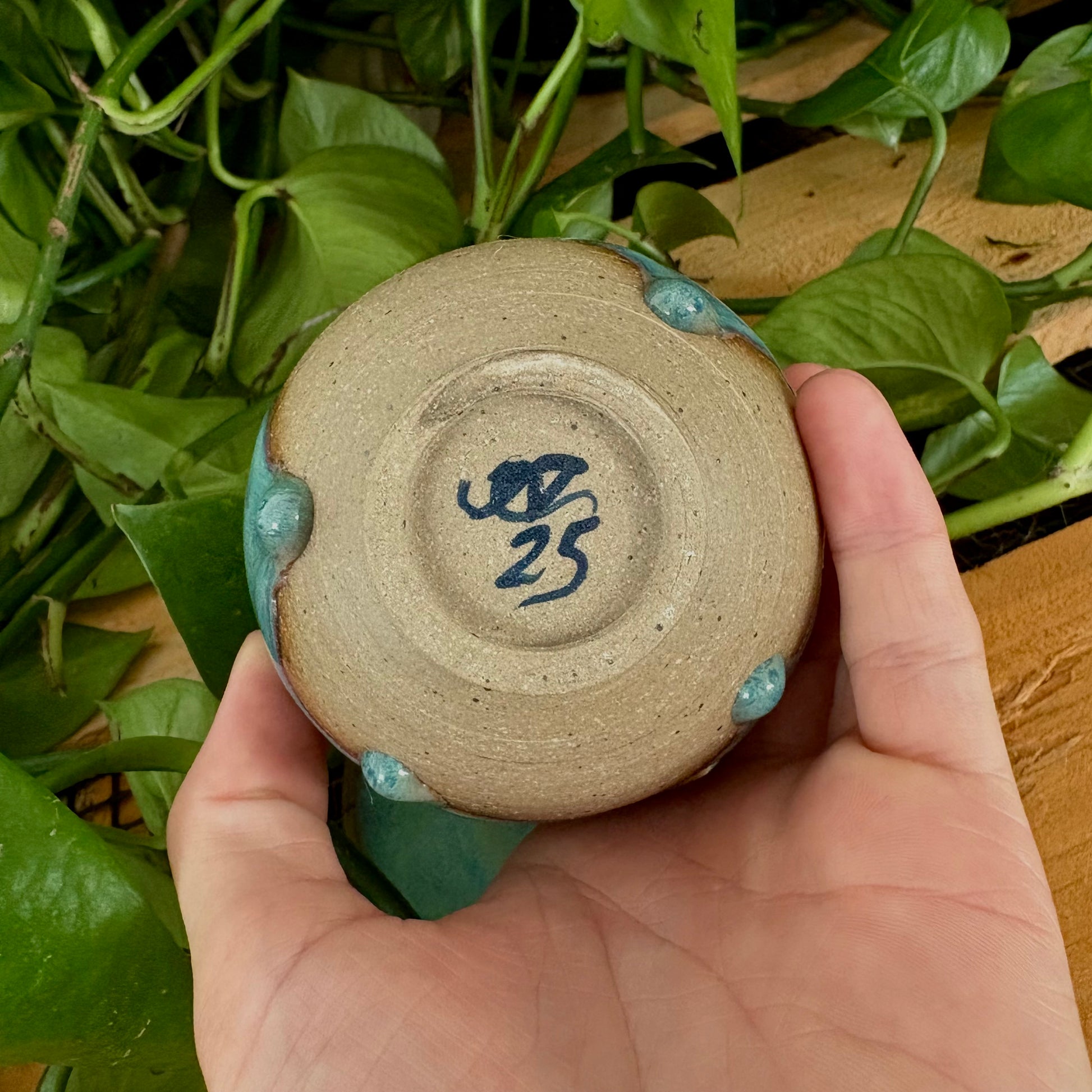 Handmade by Aleody Ceramics and finished in our Juniper glaze. This set includes one espresso cup and a matching saucer, designed to hold two shots with room for cream.
